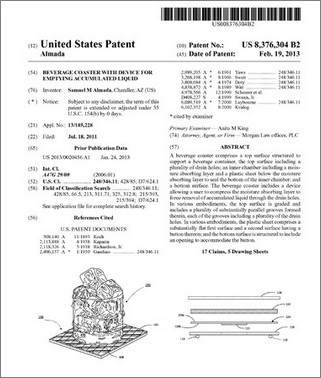 is a specialty designed and patented beverage coaster composed of: